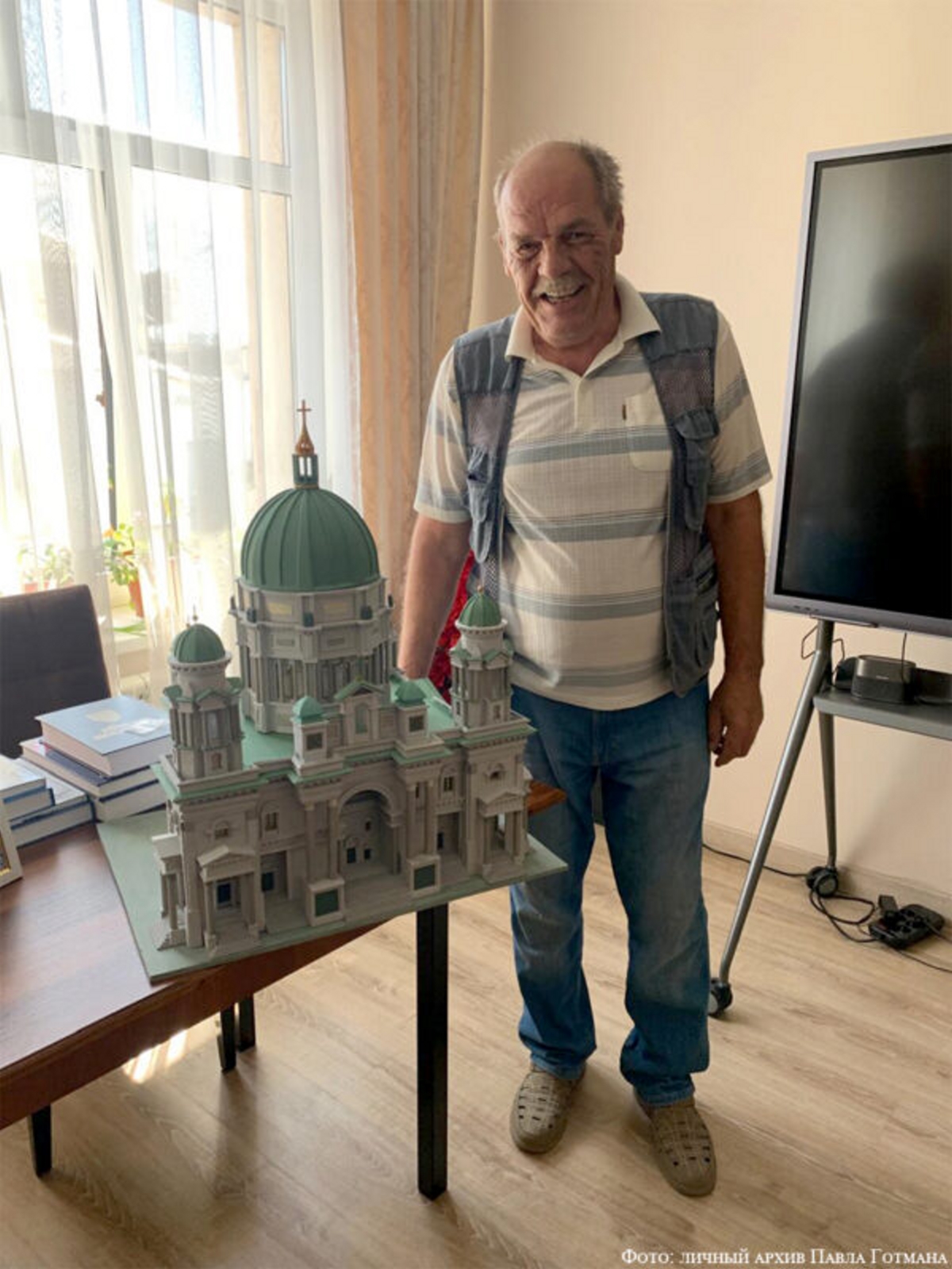 В память о мельнице Павел Готман создал её точный макет размером 60х16х30 см. Мастер изготовил его из пенопласта и покрасил акриловой эмалью. А вот ещё одна работа – макет Берлинского кафедрального собора (Berliner Dom). Миниатюрная копия величественного и помпезного здания, возведенного на рубеже XIX-XX веков в стиле необарокко, создавалась минимальными средствами. По замыслу Павла Готмана, макет не должен был полностью повторять весь внешний вид знаменитого сооружения. От создания скульптурных композиций, статуй и декоративных балюстрад автор макета отказался сразу, решил строго придерживаться архитектурной линии – без ампирных излишеств, но с пышными формами.