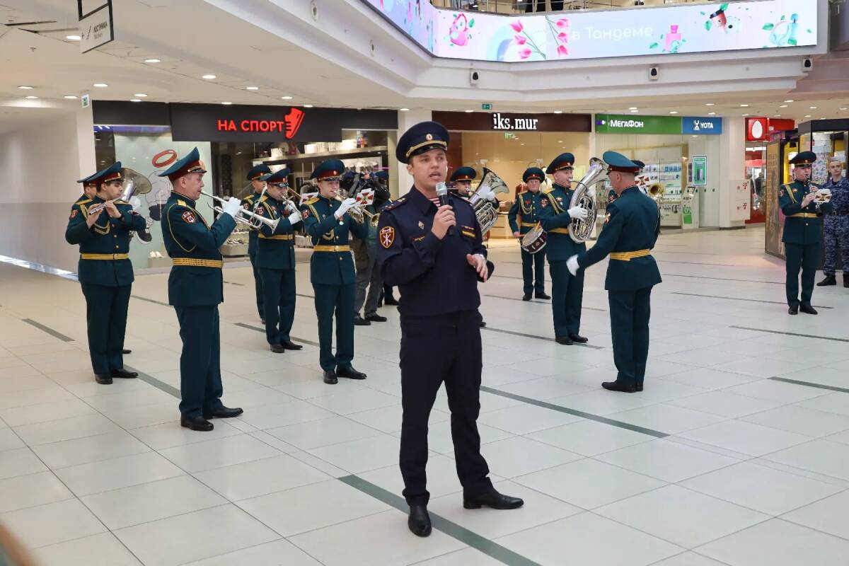 В преддверии юбилея оркестр Росгвардии исполнил военные песни в казанском ТЦ